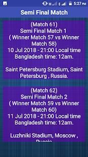 You can know all match time schedule of Fifa world cup 2018 (Russia). also can know date, local Time, stadium name.