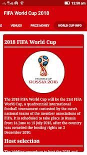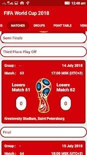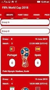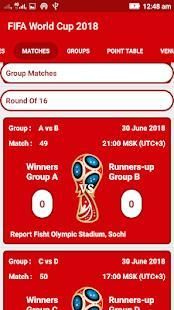 अनुप्रयोग फीफा विश्व कप प्रदान 2018 अनुसूची