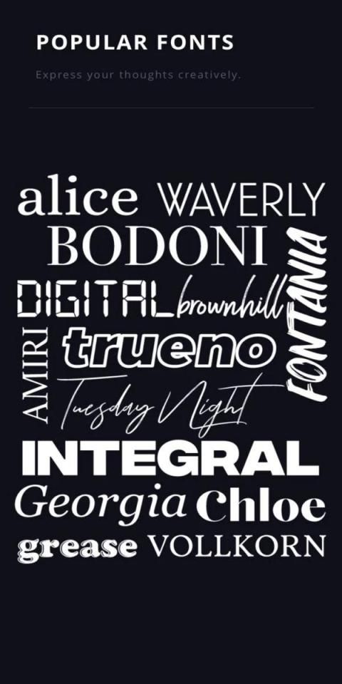 - वाइड पसंद और लोकप्रिय फ़ॉन्ट चयन।