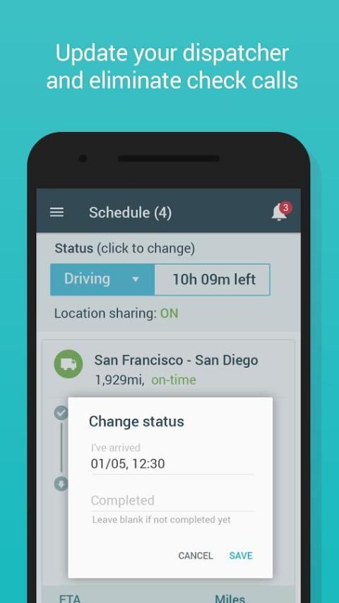 अपने भार: चौबीस घंटे अपने लोड के विवरण पर पहुंचें और जब कुछ भी बदलता है तत्काल अपडेट प्राप्त करें। पता है, जो गोदी पर कॉल करने के लिए की आवश्यकता है? यह सब नहीं है। में कॉल करने के लिए बिना लोग कार्यालय में अपनी प्रगति पर अद्यतन में वापस रखो। सभी लोड की जानकारी प्रेषण करने के लिए कि उपलब्ध है आप के लिए उपलब्ध है, भी है।