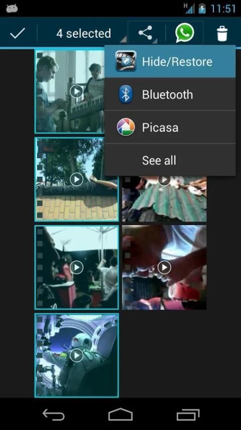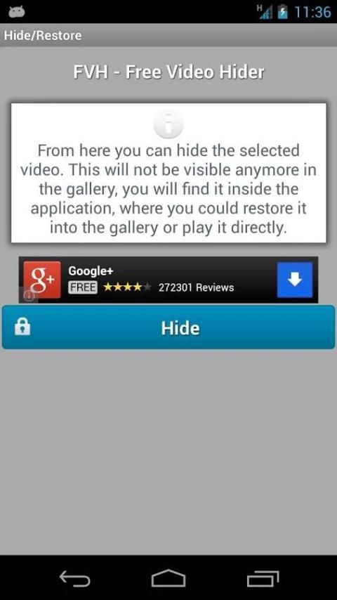 This app allows to hide your private videos from the gallery with a simple click. Each video will be stored inside the application, where you could watch them or restore into the gallery.