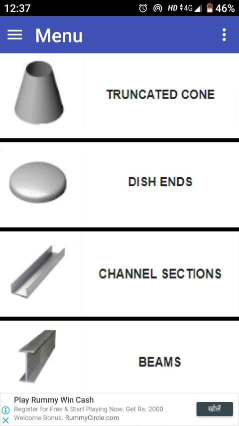 यह ऐप विभिन्न आकृतियों के निर्माण वजन की गणना करने के लिए बनाया गया है जो प्रक्रिया उपकरण या दबाव वाहिकाओं के निर्माण में व्यापक रूप से उपयोग किए जाते हैं।