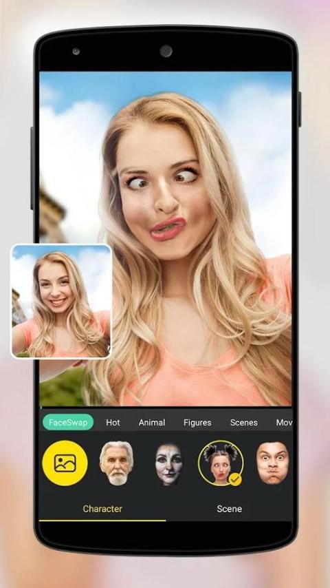 फेस स्वैप आप एक दोस्त और परिवार के वास्तविक समय में साथ चेहरे स्विच करने देता है। एक सेलिब्रिटी, दोस्त के साथ अपने आप चेहरों की अदला-बदली की तस्वीरें ले लो और हर किसी के साथ साझा करें! फेस स्वैप के अलावा, वहाँ पशु, कार्टून, फिल्म, आदि के विषयों के साथ कई एनिमेटेड स्टिकर आप सिर्फ एक सेकंड में प्यारा किटी या कप्तान अमेरिकी बन सकते हैं।