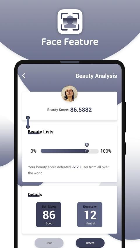 Andसुंदर प्रतियोगिता- अपने चेहरे के ofparts का विश्लेषण करने के लिए नवीनतम कृत्रिम बुद्धि और चेहरे का पता लगाने की तकनीक, यहां तक कि अपने वंश को जानने के लिए।