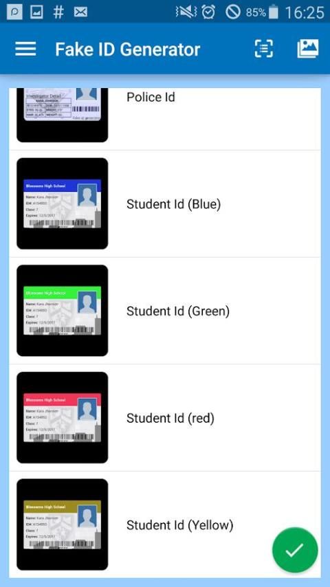 याद: यह एक मजेदार अनुप्रयोग है। इस नि: शुल्क एप्लिकेशन द्वारा बनाया गया आईडी मनोरंजन उद्देश्य के लिए ही हैं। क्योंकि वे एक वास्तविक आईडी नहीं हैं आईडी में आधिकारिक व्यापार के लिए इस्तेमाल नहीं किया जाना चाहिए।