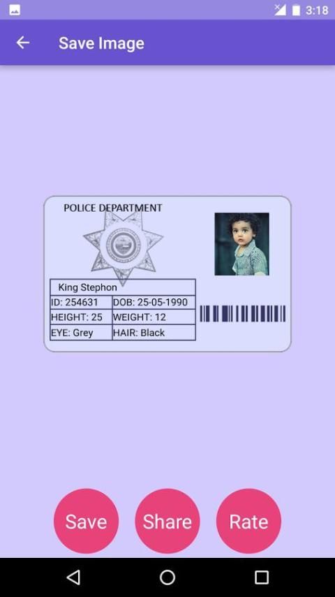 याद: यह एक शरारत अनुप्रयोग है। इस नि: शुल्क एप्लिकेशन द्वारा बनाया गया आईडी मनोरंजन उद्देश्य के लिए ही हैं। क्योंकि वे एक वास्तविक आईडी नहीं हैं आईडी में आधिकारिक व्यापार के लिए इस्तेमाल नहीं किया जाना चाहिए।