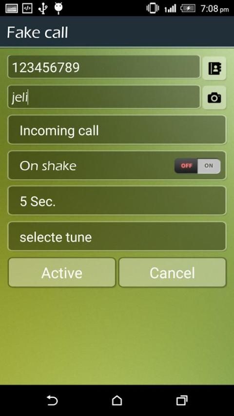 • आप एक नया नकली कॉल के लिए फर्जी कॉलर आईडी, चित्र, संख्या में कॉल आवाज और रिंगटोन सेट कर सकते हैं।