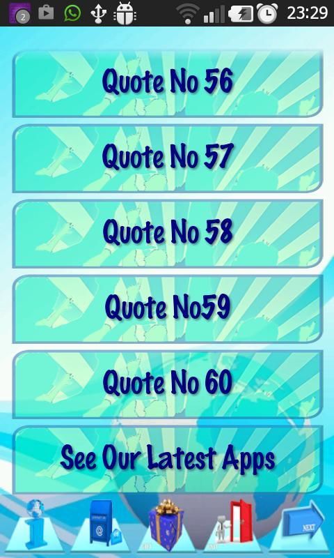 इस बॉक्स में सामाजिक मीडिया के माध्यम से साझा करने योग्य हैं कि 60 प्रसिद्ध उद्धरण शामिल हैं। यह मुफ़्त है, जबकि आनंद लें।