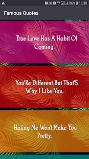 There's no denying the fact that 20,000+ users downloaded Famous Quotes latest version on 9Apps for free every week! You get various free apps from the store. This hot app was released on 2018-08-04. 9Apps believe you can enjoy yourself in this funny app.