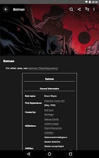 Fandom's app for Batman - created by fans, for fans. The Batman app features many of pages of content created by fans just like you. You can expect to see hundreds of pages of content created by fans just like you. Find articles on characters, comic books, TV shows, movies, videogames, and much more. No other app offers this combination of companion features that allow you to: