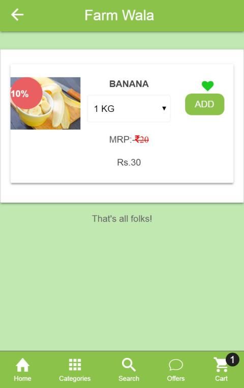 फार्म वाला, कोटपुली का सबसे बड़ा ऑनलाइन फल, सब्जियां और डेयरी उत्पाद स्टोर है। हम कोटपूतली में बहुत ही उचित मूल्य पर ताजे फल और सब्जियां वितरित करते हैं।