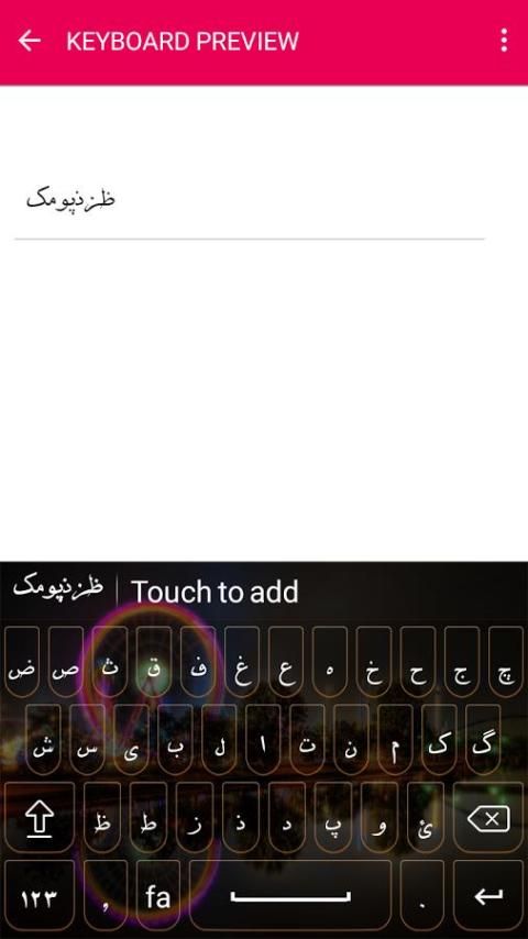 फारसी कीबोर्ड विभिन्न सुंदर विषयों में बनाया गया है, कि अपनी आंख पकड़ता अपने स्वयं के विषय का चयन करें। अंग्रेजी, आंकिक और विशेष वर्णों के लिए कुंजीपटल बदलें।