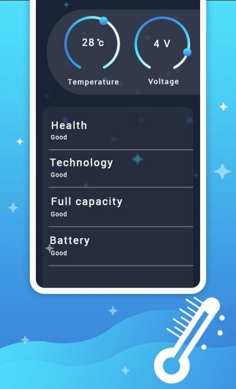 बैटरी सेवर और सुपर चार्जर आपके स्टेटस बार में आपके बैटरी चार्ज स्तर (प्रतिशत) को एक आइकन के रूप में दिखाता है, आपके पास कितना समय, तापमान, स्वास्थ्य और वोल्टेज है।