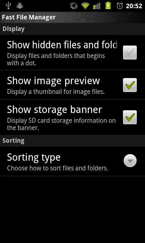 फास्ट फ़ाइल प्रबंधक एक हल्के, minimalistic और तेज़ फ़ाइल प्रबंधक (फ़ाइल ब्राउज़र) अनुप्रयोग (+ यह अच्छा लग रहा है!) है.