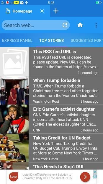 - का समर्थन करता है मुखपृष्ठ, बुकमार्क्स, इतिहास, छोटे पदचिह्न और फुल स्क्रीन मोड।