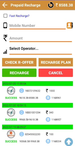 FastPe रिचार्ज सभी ऑपरेटरों के लिए सभी प्रकार के रिचार्ज प्रदान करता है। FastPe रिचार्ज भी एक DTH बुकिंग प्रदान करता है। FastPe रिचार्ज भी एक बीमा, बिजली, FastTag, मनी ट्रांसफर, गैस सभी बिल भुगतान सेवाओं को प्रदान करता है।