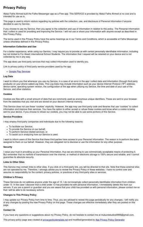 • NO FEES: Fathe Messenger uses your phone's Internet connection (4G/3G/2G/EDGE or Wi-Fi, as available) to let you message and call friends and family, so you don't have to pay for every message or call.* There are no subscription fees to use Fathe Messenger
