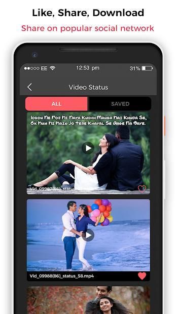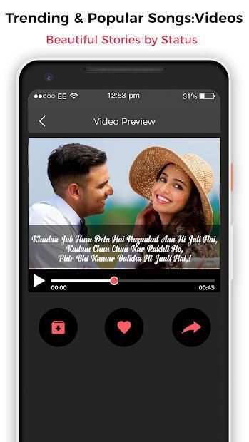 Video status have the option to directly share videos status on social sides with application given collection of amazing Feeling, sad, romantic videos