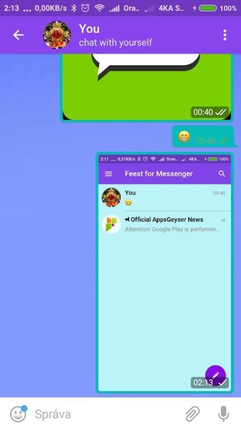हम आपको आवेदन संदेश भेजने के साथ क्या कर सकते हैं की सीमाओं के विस्तार रखने के लिए। मैसेंजर के लिए feest - आज क्रांति में शामिल हो।