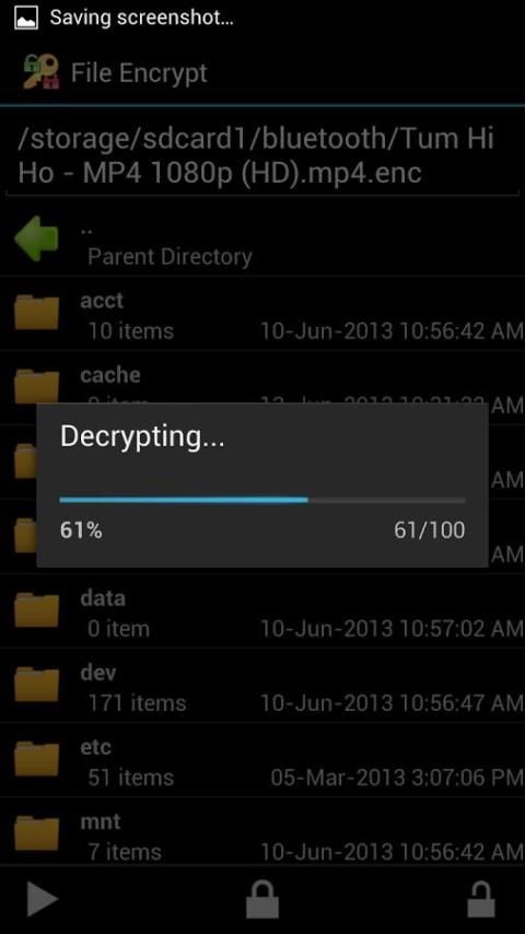 यह सीधे देखते समय पर मक्खी यह decrypting द्वारा एन्क्रिप्टेड मीडिया फ़ाइलें (वीडियो, ऑडियो और चित्र) का देखने का समर्थन करता!