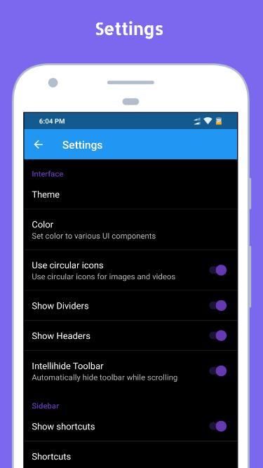 सामग्री डिजाइन इंटरफ़ेस: EX फ़ाइल एक्सप्लोरर सामग्री डिजाइन इंटरफ़ेस का उपयोग करता है।