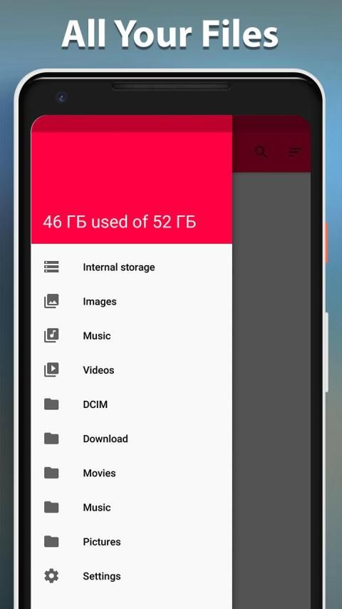 With the help of File Manager you can easily find, view, move, archive and perform other actions with files and applications on the go!