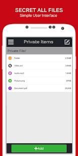 अनुप्रयोग हाल एप्लिकेशन सूची से गायब हो जाता है। आप किसी भी कॉल मिला है जब तत्कालीन लॉकर का उपयोग कर लॉकर तुरंत ही बंद कर देता है और यह भी अचानक किसी के पास आया, तो और तुम सिर्फ स्क्रीन बंद तो लॉकर इच्छा स्वत: बंद हो। अच्छी तरह से डिजाइन विषय। "फ़ाइल प्रबंधक लॉक छुपाएं गैलरी वॉल्ट फोटो संग्रहण कैलक्यूलेटर अनुप्रयोग संरक्षण" का समर्थन करता है बच्चे या अज्ञात व्यक्तियों द्वारा की स्थापना रद्द होने से कैलकुलेटर तिजोरी रोकने के लिए और भी बल को रोकने के फ़ाइल प्रबंधक लॉक करके अन्य applications.Hide तस्वीरें वीडियो और फ़ाइल द्वारा अपने ऐप ताला रोक छुपाएं गैलरी वॉल्ट फोटो को वीडियो का भंडारण त्वरित प्लेबैक। फ़ाइल प्रबंधक लॉक छुपाएं गैलरी वॉल्ट फोटो संग्रहण फिंगरप्रिंट अनुप्रयोग ताला और फिंगरप्रिंट गैलरी तिजोरी संगत उपकरणों के लिए समर्थन किया।