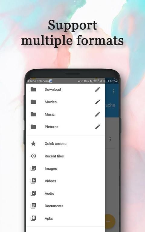 Support a variety of formats —— Easily manage media and popular files on Android phones, including music, videos, pictures, documents, APKs and files, and support image preview.