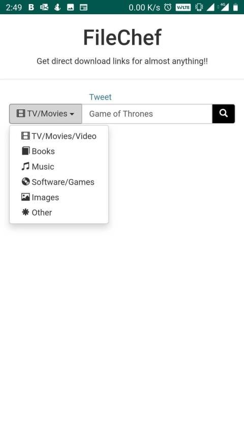 Filechef दुनिया का # 1 फ़ाइल खोज इंजन है और इंटरनेट पर उपलब्ध किसी भी फ़ाइल को पा सकता है। यह Google की उन्नत खोज का उपयोग करता है जो आपको उच्च गुणवत्ता वाली फ़ाइलों को उच्च डाउनलोड गति के साथ लाता है।