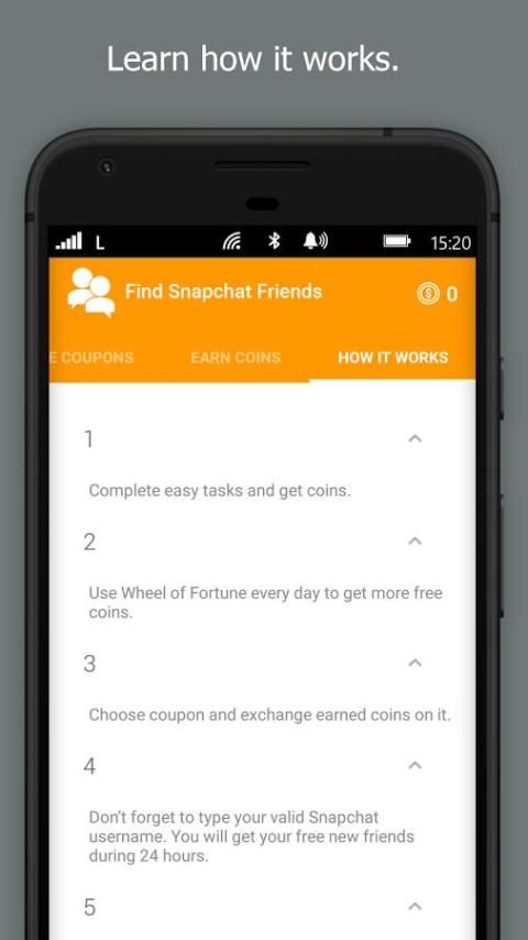 • अंतिम चरण कूपन का उपयोग करें और Snapchat आवेदन में नए दोस्त मिल रहा है।