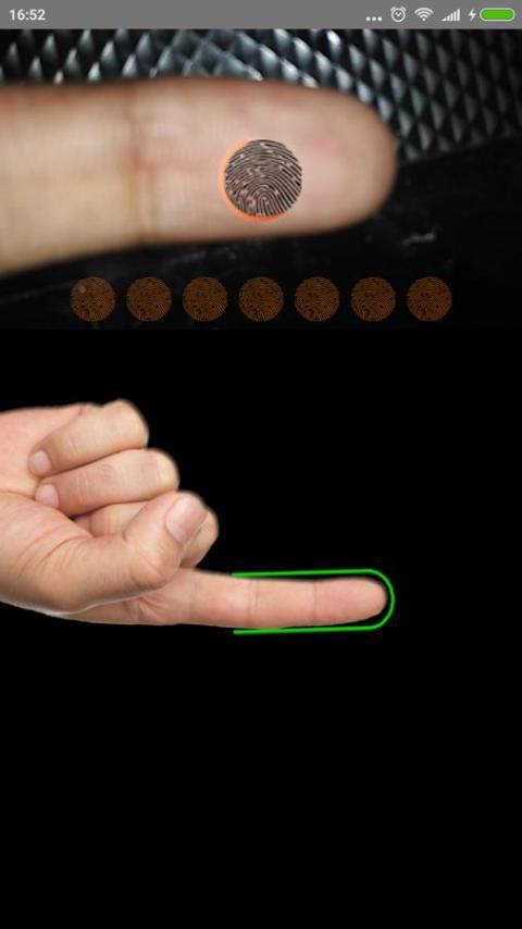 यह एक शरारत या मजाक या मज़ा आवेदन नहीं है। इस एप्लिकेशन को बंद करने के लिए / फिंगरप्रिंट छवियों को अपने फोन कैमरे का उपयोग कर कब्जा का उपयोग कर अपनी क्षुधा अनलॉक प्रयोग किया जाता है।
