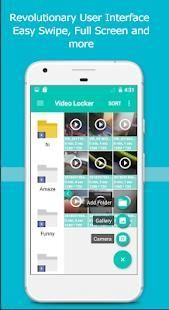 Hide multiple Videos in Video locker, In-built media player, Full screen Play, Video swipe, Screen rotation, Sort and Arrange files, record videos from camera, Unhide option to restore files to gallery and much more.