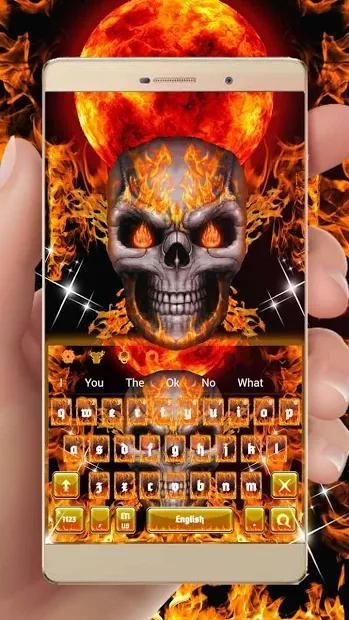 Fire skull keyboard theme will make your android look cool fury angry man.