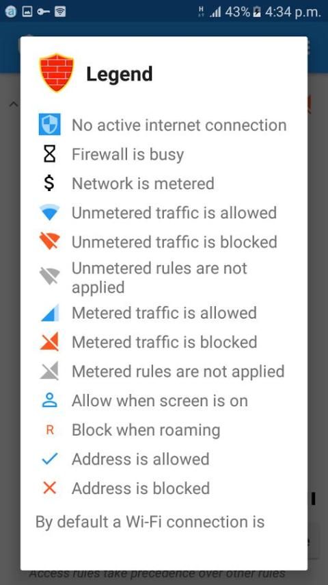 फ़ायरवॉल इंटरनेट के लिए भेजे जाने से आपकी व्यक्तिगत जानकारी की रक्षा करता है। फ़ायरवॉल आप IP पता, होस्ट नाम या डोमेन नाम के आधार पर फिल्टर नियम बनाने के लिए अनुमति देता है। आप की अनुमति है या एक app के केवल विशिष्ट कनेक्शन से इनकार कर सकते हैं। तुम सब करने की जरूरत है तो बस की अनुमति दें या इनकार करते बटन दबाएँ।