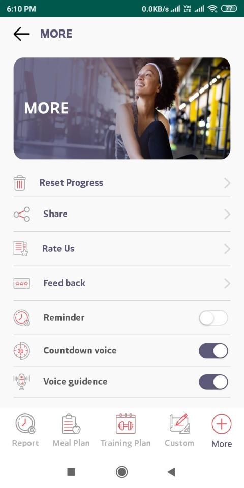 - Each day workout reminders