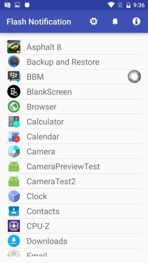 फ्लैश अधिसूचना किसी भी नए आवेदन अधिसूचना के बारे में सूचित करने के लिए आगे या पीछे कैमरे का फ्लैश का उपयोग करता है।