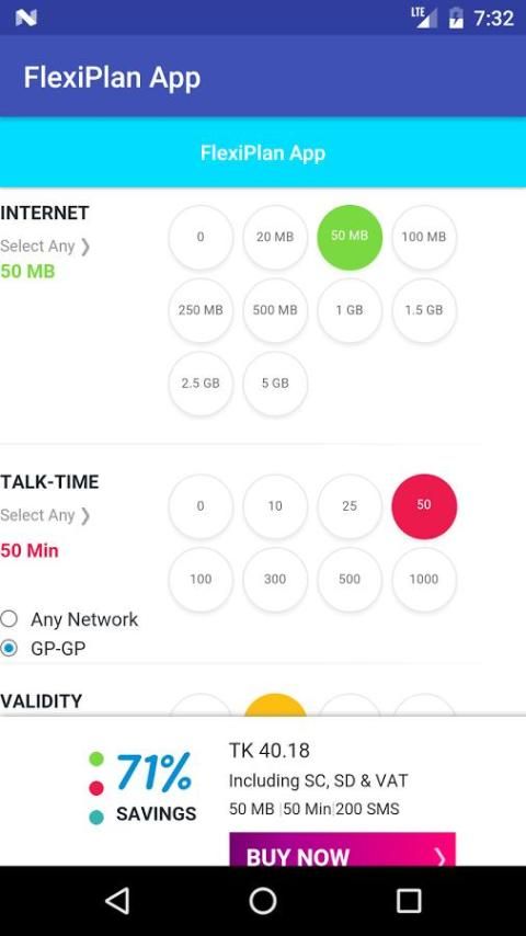 FlexiPlan एप्लिकेशन जहां आप खरीद सकते हैं GrameenPhone एमबी, Talktime और एसएमएस निशुल्क एप्लिकेशन है।
