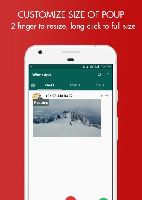 You can adjust the size and transparency of video popup working in small screen. Moreover, drag and drop wherever you want. For example, you can drag on top of the screen while chatting at Whatsapp.