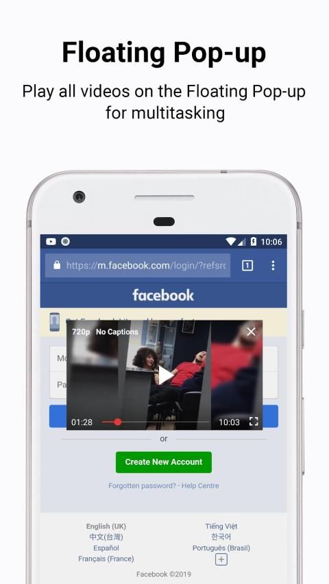 अब आपको अपने वीडियो डाउनलोड करने की कोई आवश्यकता नहीं है, आपके पास अंततः एक निःशुल्क YouTube प्लेयर है जो आपको अपने पसंदीदा वीडियो देखते समय अपने न्यूज़फ़ीड या संदेशों की जाँच करने देता है!