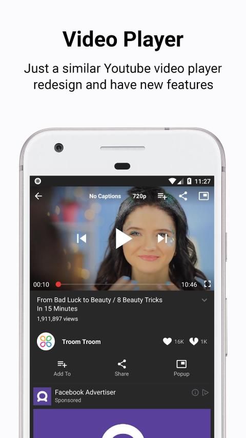 No need to download your videos anymore, you finally have a free YouTube player that lets you check your newsfeed or messages while watching your favorite videos!