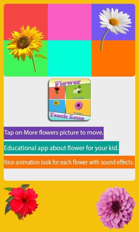 -> बच्चों के लिए छोटे बच्चों के फूल और उनके फूल का नाम और छवि सीखता मदद करता है कि एक मुक्त शैक्षिक अनुप्रयोग है "फूल जोन सिखाओ"।