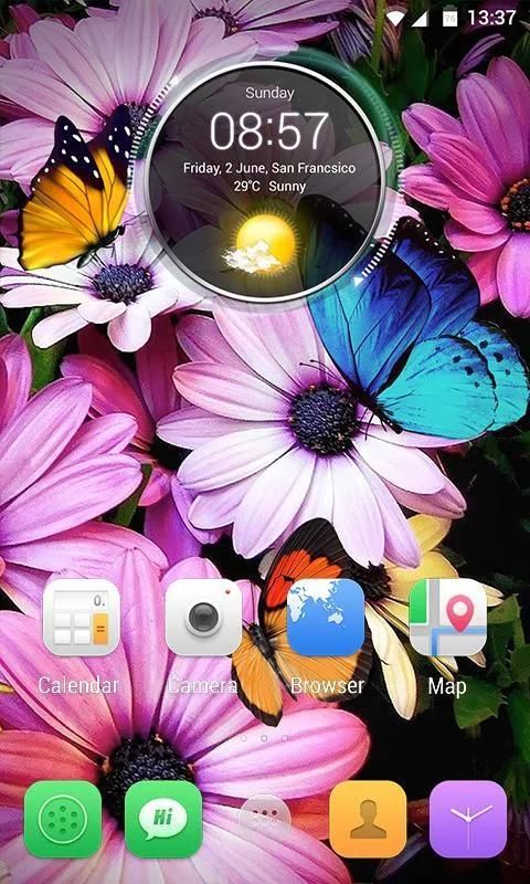 यही कारण है कि भव्य प्रतीक और वॉलपेपर, फ़ोल्डर और अनुप्रयोग दराज इंटरफ़ेस सहित प्रदान करता है।