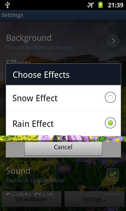 Flowers live wallpaper included Analog clock. you can choose different wallpaper background.