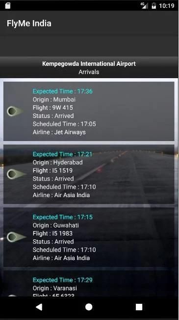 पहुँच वर्तमान उड़ान आगमन / भारत में कुछ लोकप्रिय हवाई अड्डों के लिए डिवाइस पर प्रस्थान जानकारी।