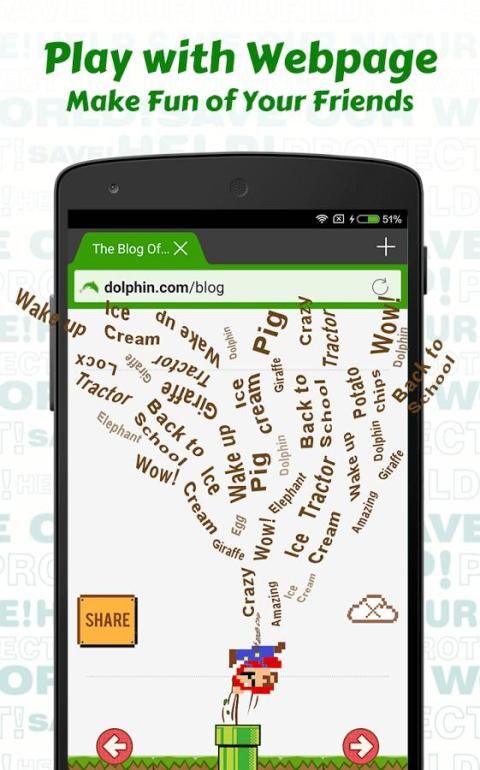 लड़कों और लड़कियों को अपने फोन क्षमताओं के साथ उत्सुक बनाओ। चलो दूसरों को लगता है आप एक है जो अपने फोन पर शांत विकल्पों में से सभी प्रकार है कर रहे हैं। आप अपने दोस्तों से ईर्ष्या करो! आप एक विशेष तरह उड़ शब्दों का प्रयोग कर सकते हैं डॉल्फिन ब्राउज़र, व्यापक फ्लैश समर्थन और निजी मोड के साथ सबसे अच्छा मोबाइल ब्राउज़र के लिए ऐड-ऑन।