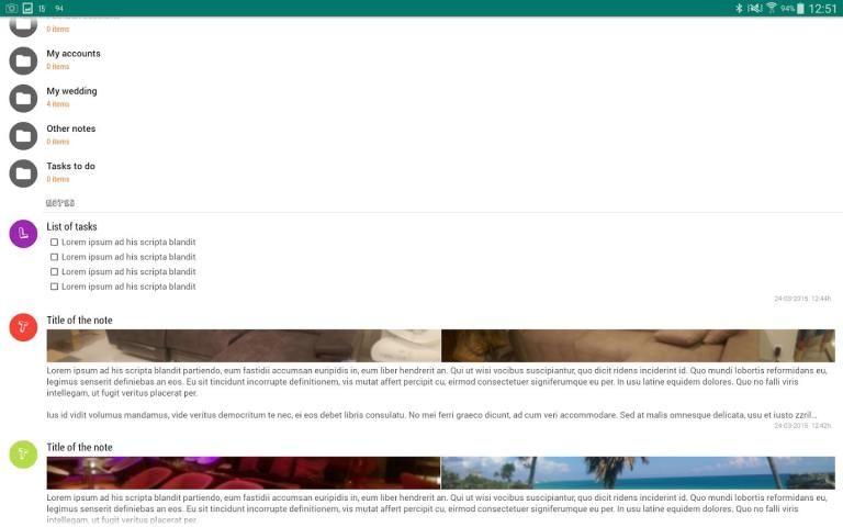 फ़ोल्डर नोट्स के साथ आप प्रत्येक के लिए नोट्स और लिंक छवियों और फ़ाइलों के सभी प्रकार बना सकते हैं.