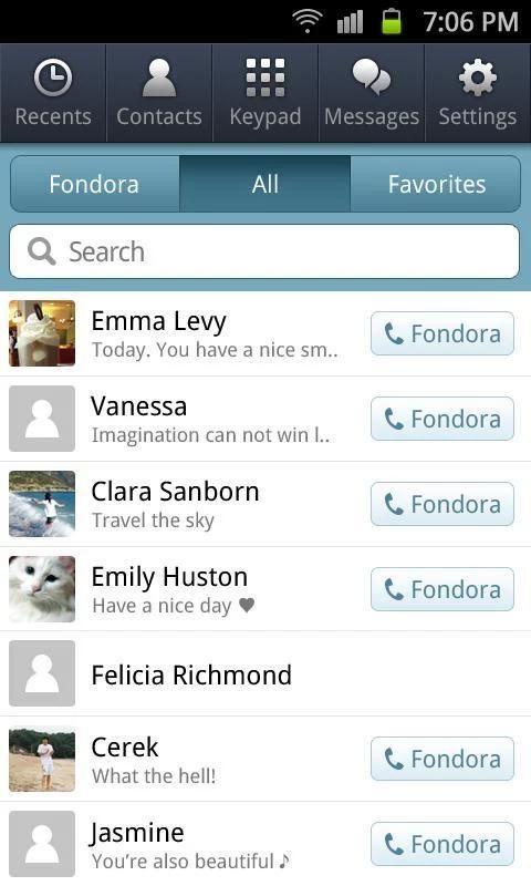 The automatically generated link to your contacts on the mobile phone will automatically find your Fondora friends. Also, the call history can let you easily see how long your conversation was.