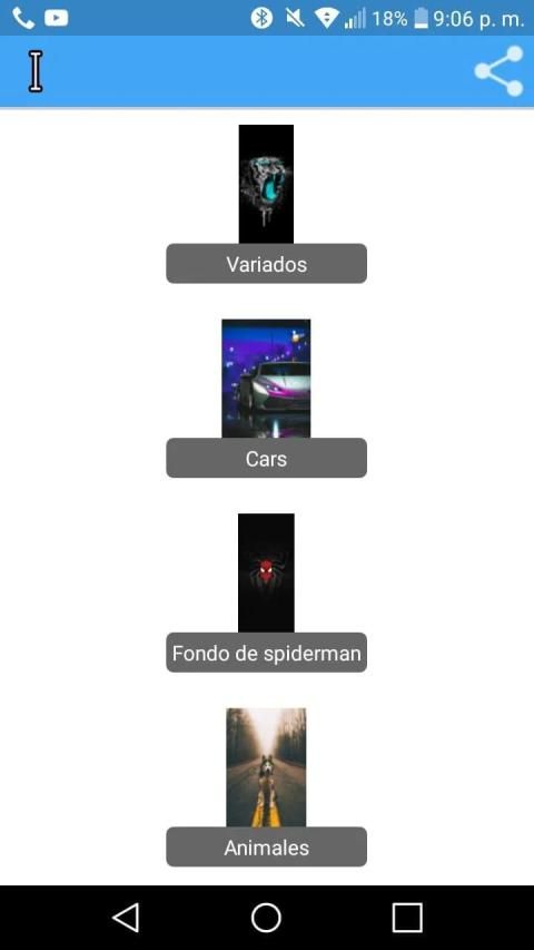 Cuenta con un menu simple y con varios apartados para que puedas elegir los fondos de varias categorias.
