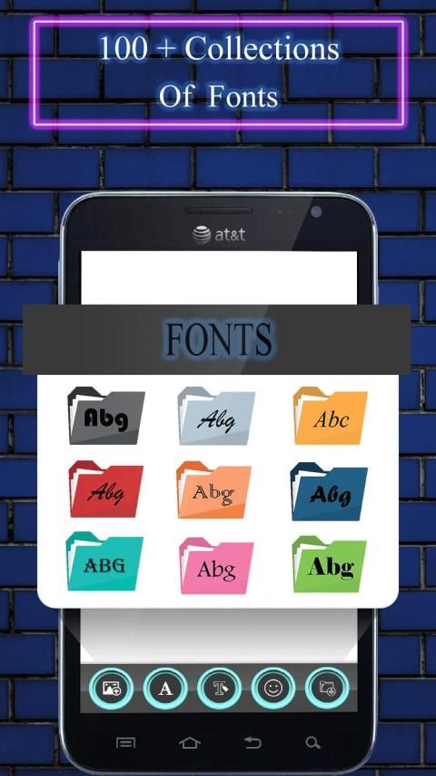 अद्भुत फ़ॉन्ट और स्टिकर। एक उपयोगकर्ता अलग-अलग श्रेणियों से पृष्ठभूमि चित्र चुन सकता है,