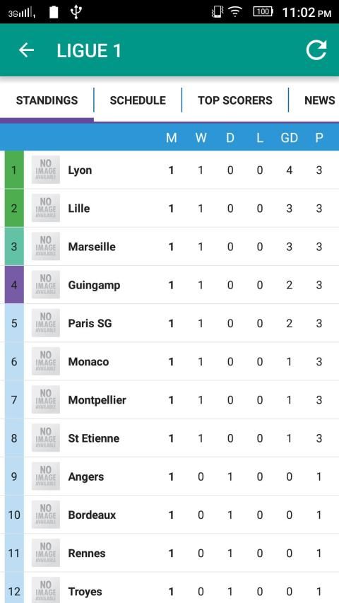 - Standings: see all teams' live scores, matches played, wins, loses, draws and goal differences.